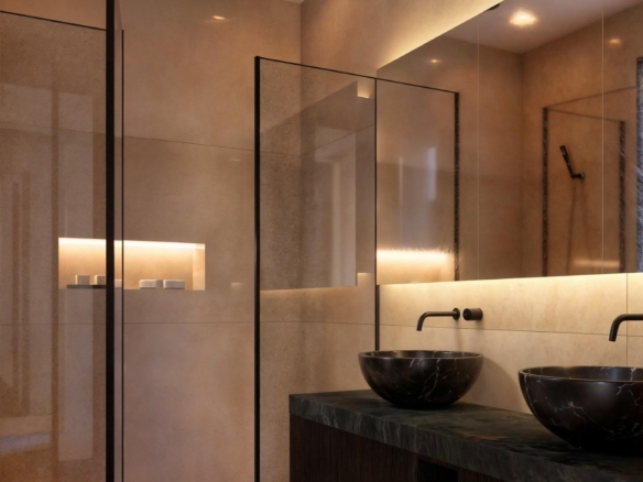 De open woon- en eetkamer wordt aangevuld met een volledig uitgeruste designkeuken met apparatuur van topkwaliteit, ideaal voor zowel het dagelijks leven als het ontvangen van gezelschap. Het pand wordt omgeven door ruime terrassen, waardoor er meerdere ontspannings- en entertainmentruimtes in de open lucht zijn gecreëerd.