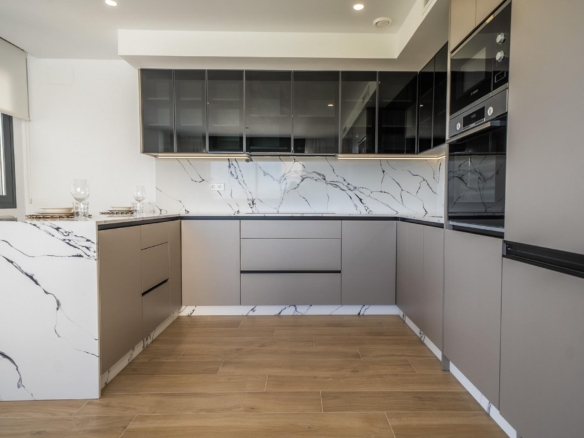 Moderne woningen bestaan uit 2 slaapkamers, 2 badkamers, open keuken, de woonkamer met open uitzicht op het terras, semi / kelder, solarium, prive tuin met de parkeerplaats.
