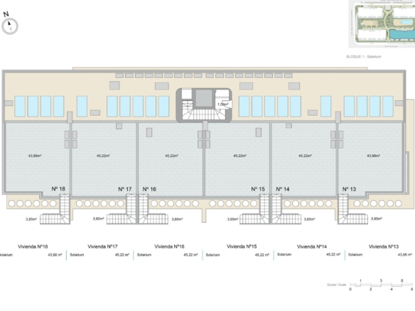 In de buurt van dit wooncomplex vind je alle faciliteiten van het openbaar vervoer, scholen, supermarkten, winkelcentra, golfbanen en fantastische gemeentelijke parken met hun kinderspeelplaatsen.