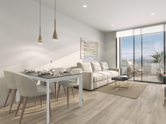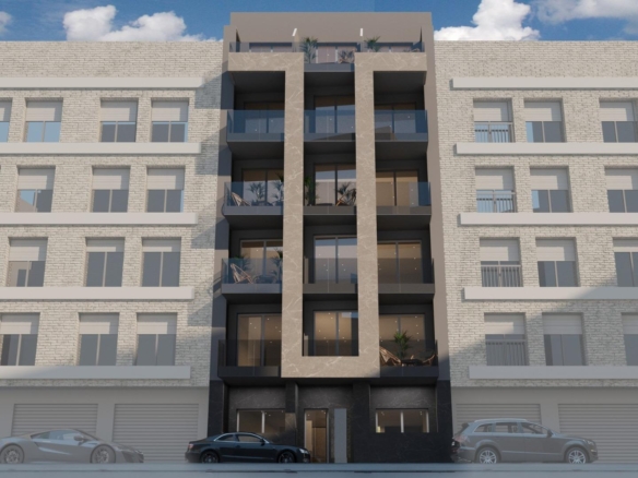 Dit exclusieve nieuwe project bestaat uit slechts 17 appartementen en penthouses, variërend van studio's tot appartementen met twee slaapkamers, ontworpen om comfort, functionaliteit en een eigentijdse stijl te bieden. Alle woningen beschikken over een open keuken die in verbinding staat met de woon-eetkamer, voorzien van inbouwapparatuur, wat zorgt voor lichte en uitnodigende interieurs. De slaapkamers zijn voorzien van inbouwkasten en de badkamers zijn volledig uitgerust met wastafels, spiegels, vloerverwarming en doucheschermen.