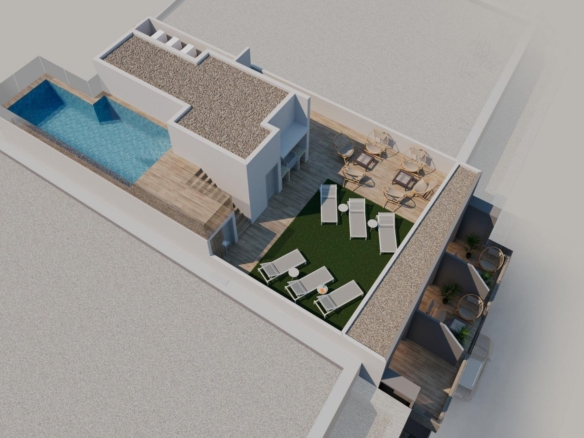 Bewoners kunnen genieten van een exclusief dakterras met een gemeenschappelijk zwembad, barbecue, sauna en ligweide met ligstoelen, bereikbaar via een lift of trap. Deze privéruimte is perfect om te ontspannen, te zonnen en te genieten van een panoramisch uitzicht over de stad. Het biedt een rustig toevluchtsoord boven de drukke straten van Torrevieja en voegt aanzienlijke waarde toe aan het project.